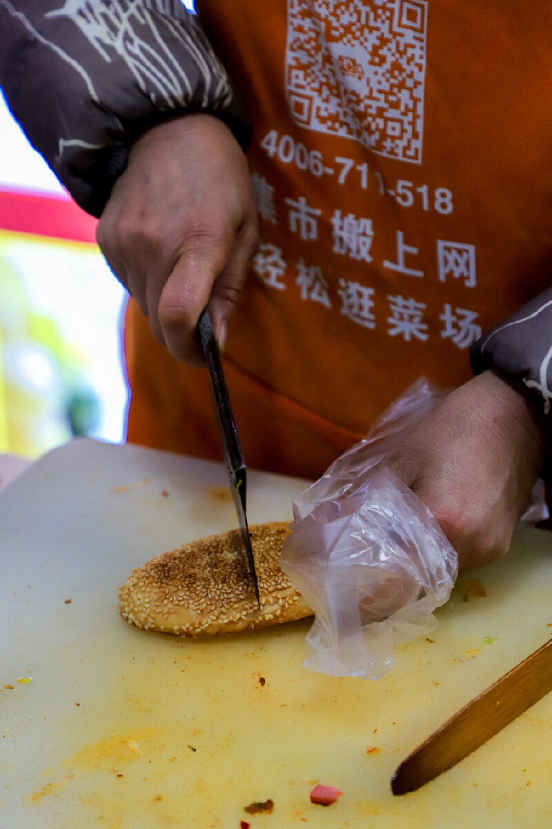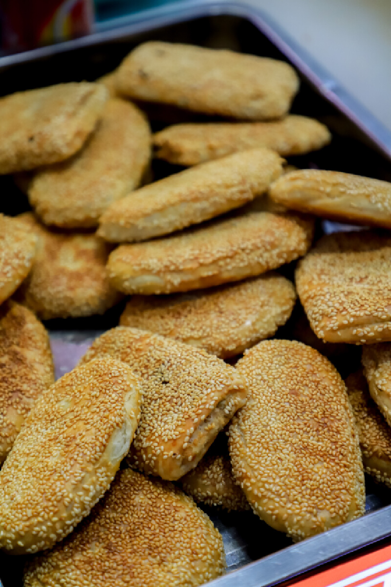 刚出锅的芝麻饼,真的有点东西。洒满白芝麻的饼壳,又香又酥,一点不油腻。