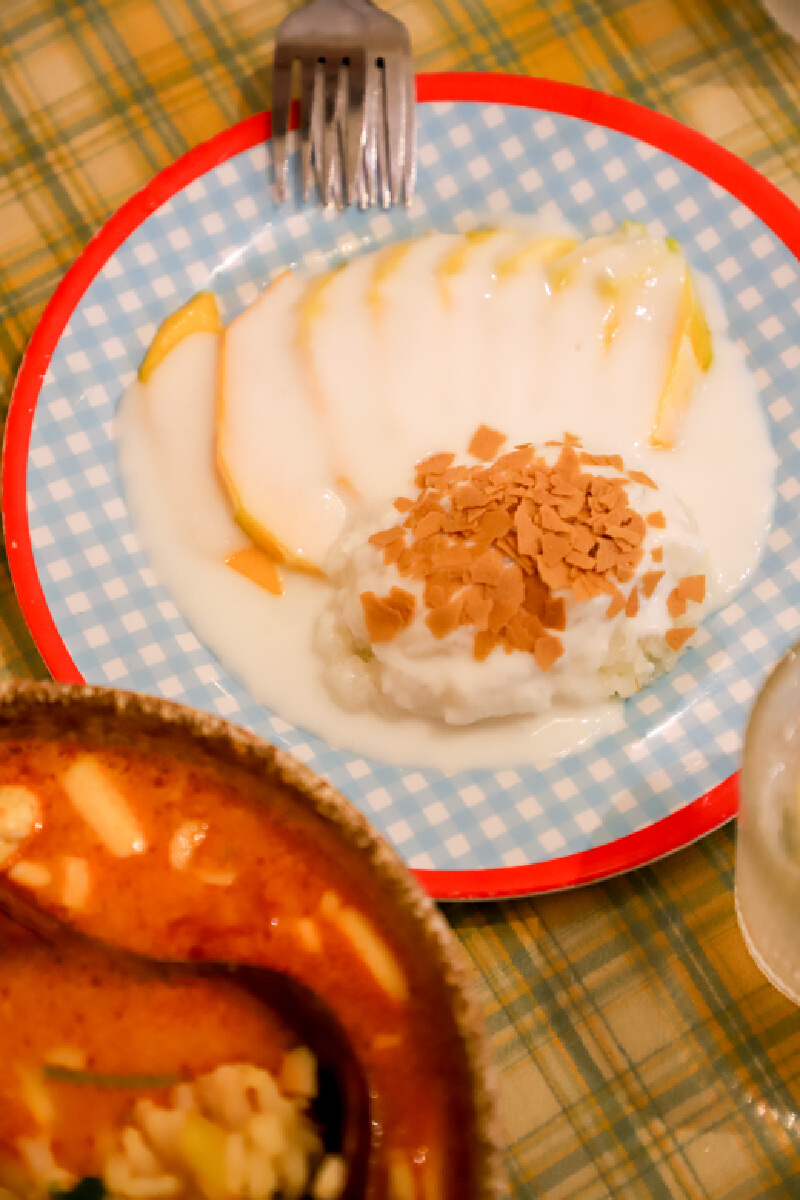 芒果糯米饭拥有控糖人也无可挑剔的甜度,糯米饭浸在椰汁里,绵密加倍,和酸甜的芒果是绝配。