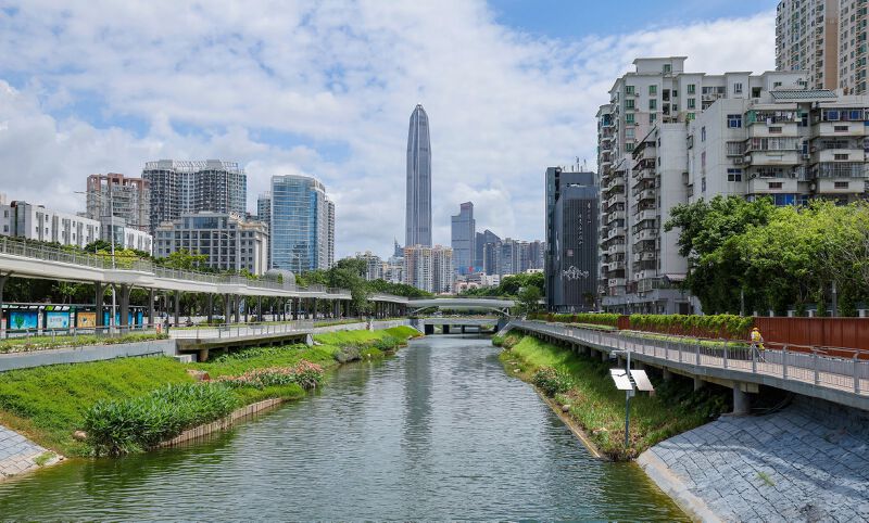 2022年,福田区启动了新洲红树碧道建设,围绕生活、生趣、生境、生机四个段落,开展红树林生态保护与修复和滨水生态空间设计,打造了中心城区繁华都市与自然野趣亲密融合、人与自然和谐共生的都市碧道范例。