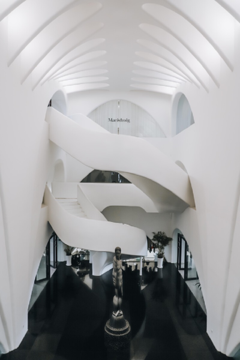 艺之卉的新锐美术馆致力于展示最前沿的艺术和设计潮流,在多元背景下,形成不同行业在艺术与设计上的跨界整合,通过服饰呈现出具有温度且精彩的表达。其外部建筑采用了具有艺术感的设计,光影和简约色块的巧妙运用,营造了一种极致的空间美感,是不少文艺爱好者的拍照打卡点。