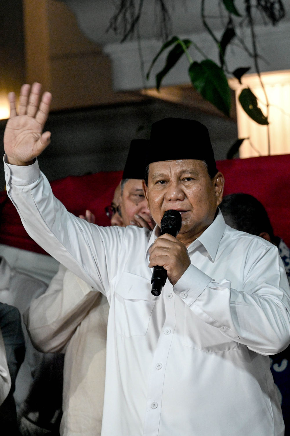 3月20日,在印度尼西亚雅加达,普拉博沃在媒体记者和支持者到场的集会上讲话。新华社发(阿贡摄)