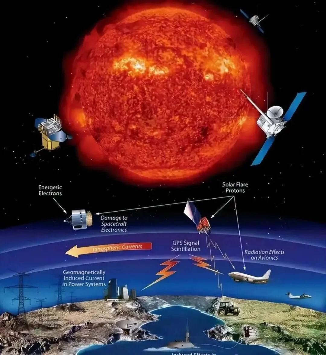 同时,地磁暴还会影响电子产品和通信设备中的电磁部件,可能导致通信中断、导航失灵等问题。此外,地磁暴还可能对卫星和空间站的运行产生影响,因为它们需要在稳定的地球磁场环境中才能正常工作。