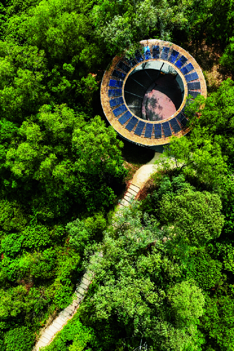 祝捷说,公园设计的出发点是守护现场的每一分自然元素:一草一木、一石一水。零碳公园的“起点”是两个山头和一个谷地,虽然没有特别突出的自然条件,但胜在自然和原始。因形就势、因地制宜、就地取材……以颇具辨识度的公园主入口的夯土墙为例,所用建材便取自原址的泥土,再综合低碳技术处理,以传统夯土工艺建设而成。此外,公园在建设中回收利用山林中的枯木和石头,做成坐凳、台阶;把雨水收集起来,形成互动性的水景;把施工过程中破除原有建筑的混凝土碎块收集起来,重新铺成路面。通过采用包含大量光伏发电、风能利用在内的低碳技术,祝捷团队希望来到零碳公园的每个人在每一处都能感受到低碳,在潜移默化中慢慢养成低碳的绿色生活方式,以“最轻”的方式推动“把自然还给自然”的生态理念。