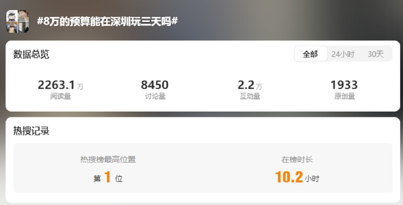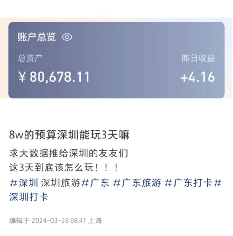 近日,网友在社交平台发帖问,“8万的预算能在深圳玩3天吗”,3月28日该话题还冲上了热搜第一。哎呀妈呀,这泼天的富贵轮到我大深圳了?