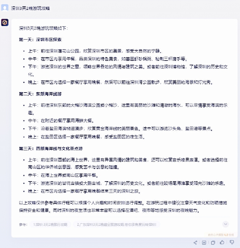 ▲本文的游玩攻略由文心大模型 4.0 生成。