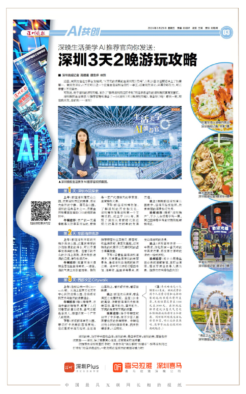 深圳晚报生活美学AI推荐官特地准备了一份《深圳3天2晚游玩攻略》,准备好了吗?跟我一起,现在就出发,目的地——深圳!