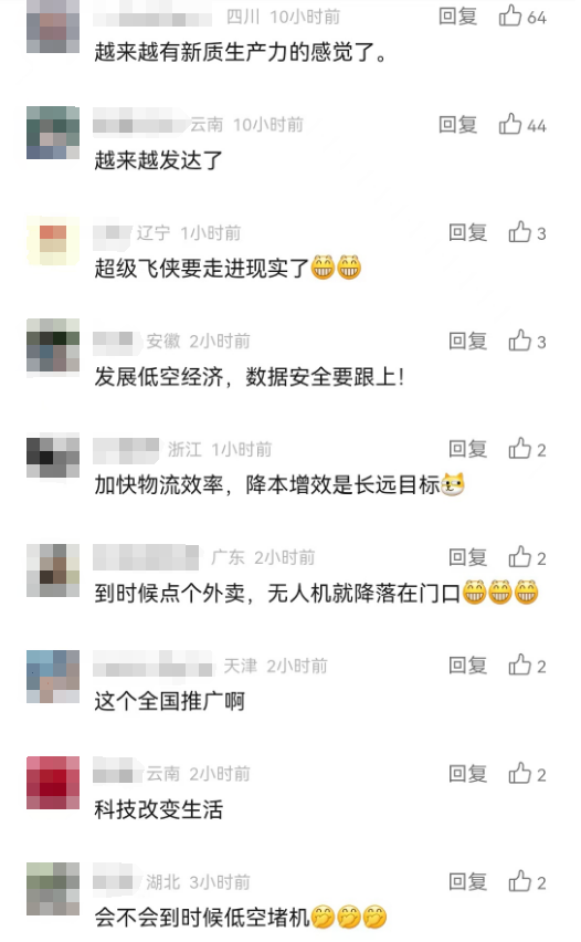 深圳市某物流公司总监表示,从南山寄到宝安,传统的陆运至少要经过2个中转场,现在直接从南山通过无人机运输到石岩的无人机集散中心,再通过无人机运送到快件目的地的网点,整体时效能提升50%以上。