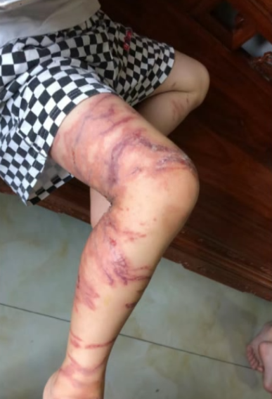 由于豆豆被蛰伤后,双腿出现了大面积红肿,杨先生赶紧带他去往医院治疗。