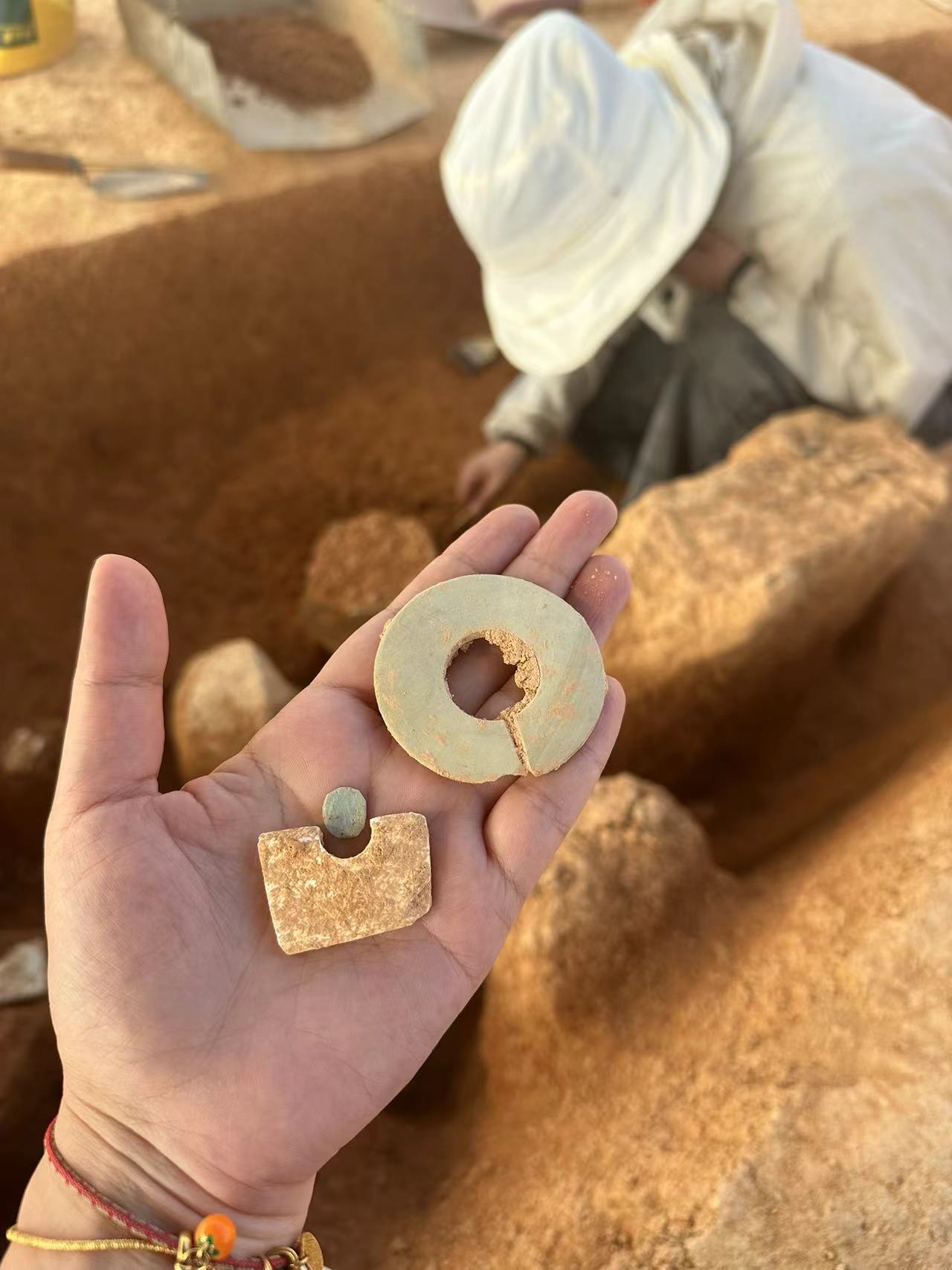出土的精美石玦,莹润光滑、手感极佳。 深圳特区报记者 莫荣宝 摄