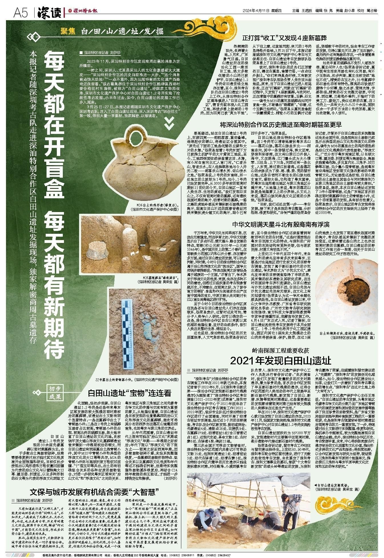 3月25日-27日,深圳特区报记者跟随深圳市文化遗产保护中心深圳考古队,进入了白田山遗址现场,深入深圳考古“圳在挖土”第一线,带回大量一手素材,独家解密,以飨读者。