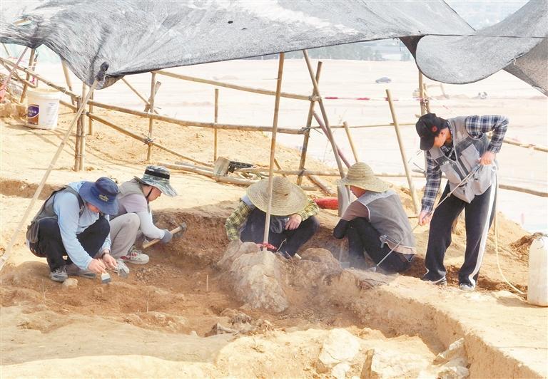 白田山遗址发掘现场。 深圳特区报记者 莫荣宝 摄