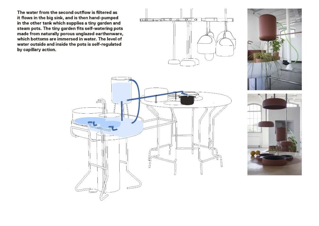 作品简介:“新型厨房”是一个标志性的项目,它体现了我们未来必将要产生社会变化的一种理念。这是一个假设性项目,假设我们如何以一种可持续和负责任的方式处理我们一天的日常事务,以及一个人如何以一种更宏观的方式衡量自身行为所带来的结果。“新型厨房”这一项目的概念突出了最大限度地减少一些宝贵及最基本资源浪费的重要性,如水和食物此类资源。水可以重复使用于不同用途,从而减少一个家庭的生态足迹。至于食物,存储空间局限了我们对食物数量和质量的正确估计。同时,这个设计项目解决了厨房的潜力共享问题。