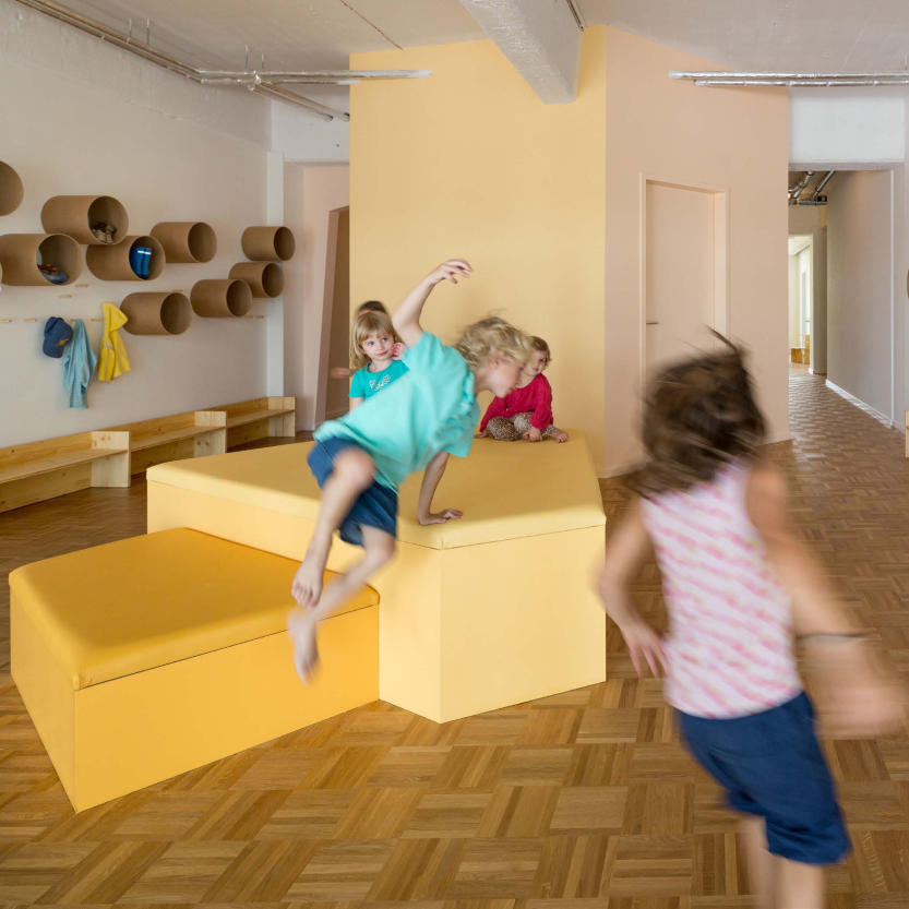 作品简介:我们坚信完整且易感知的环境设计会给孩子们带来安全感和幸福感。这样的情感能让孩子们更容易地从家庭环境过渡到到幼儿园当中。我们所有的产品都采用实木制成,具有可持续的附加值。这些产品在幼儿园整个使用过程中可以抵抗强烈的磨损,用旧后可以很容易地进行修复。