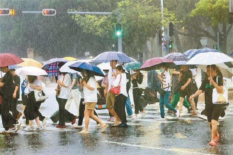 ▲4月23日8时许,深圳迎来暴雨,天色暗如傍晚,上班族冒雨前行。深圳晚报记者 陈玉 摄