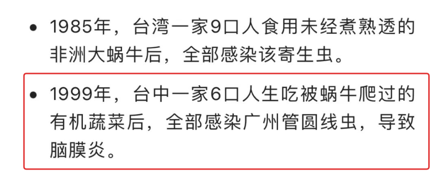 这种寄生虫一旦吃进嘴里,就会寄生在你的中枢神经或脑脊液中,让你持续不断地发热、头痛。最后导致嗜酸性脑膜炎!