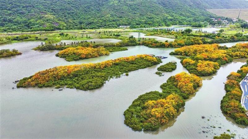 ▲东涌湿地园的红树林逐步变色。
