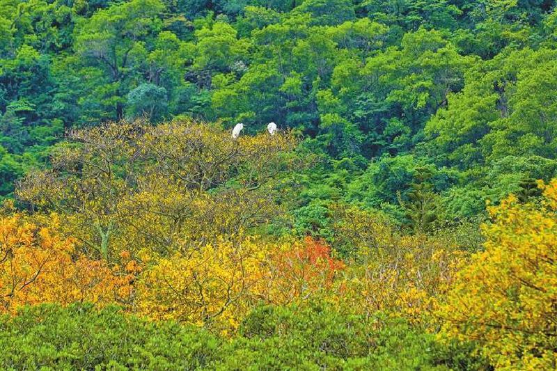 ▲白鹭在红树林枝头活动。