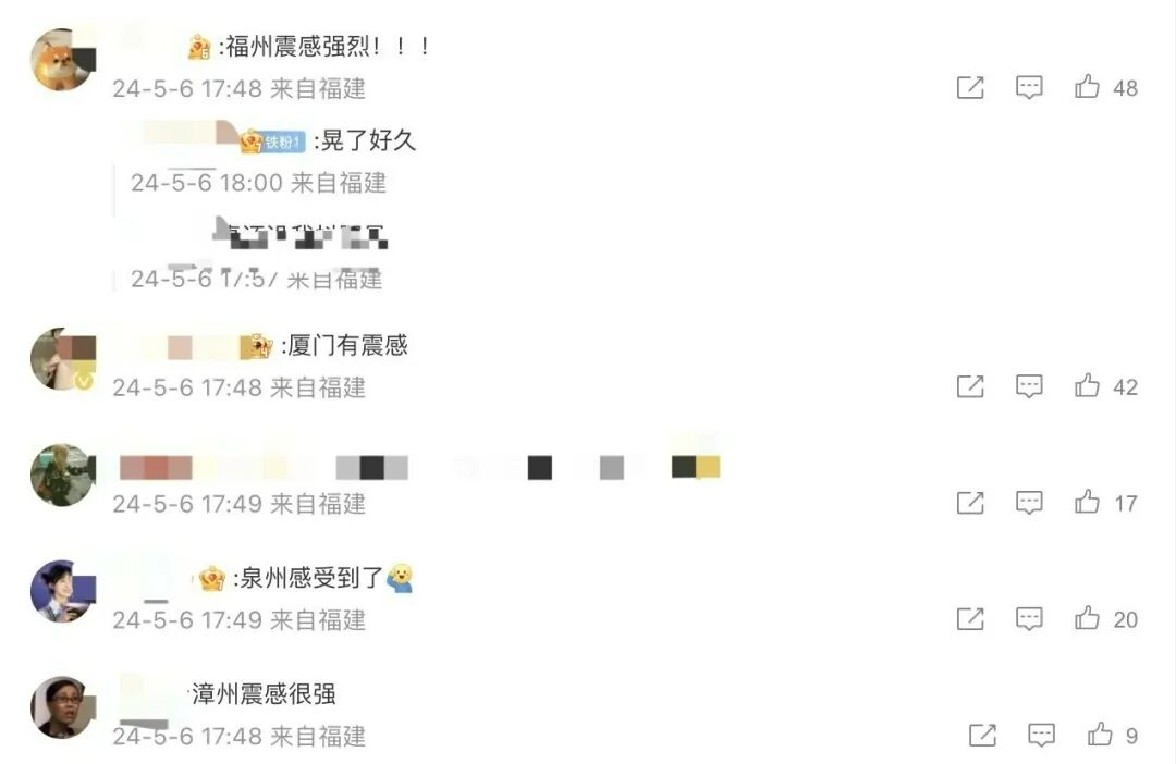 福建网友表示震感明显,多地网友反馈,福州、厦门、泉州、漳州有震感。