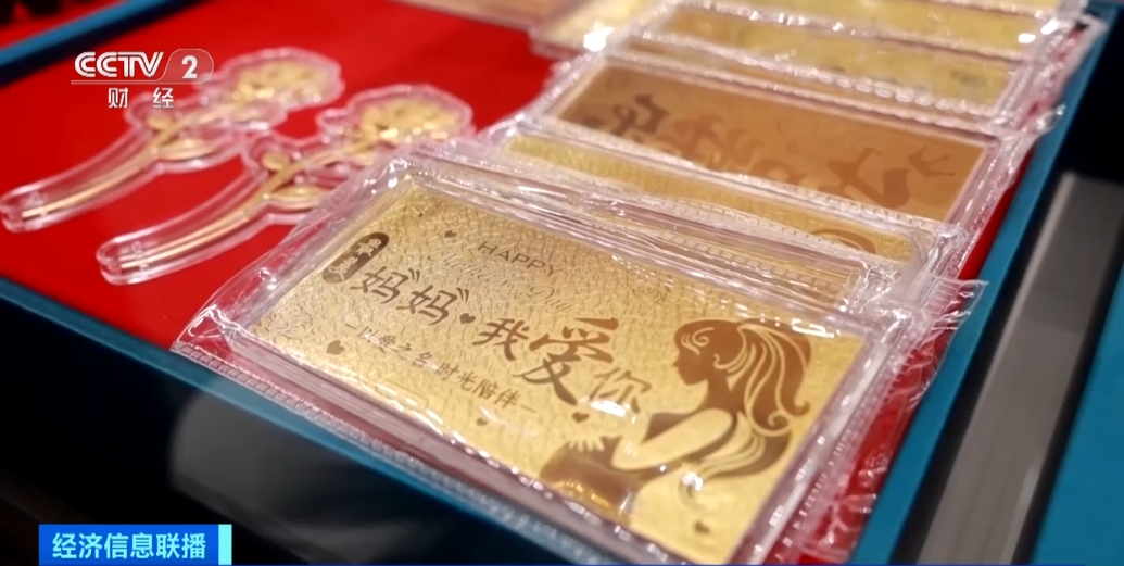 广东深圳水贝某黄金商户 周嘉欣:快到母亲节了,母亲节的产品会卖得比较好,比如母亲节金钞以及小的玫瑰花摆件,这类销量会上涨30%到50%左右。