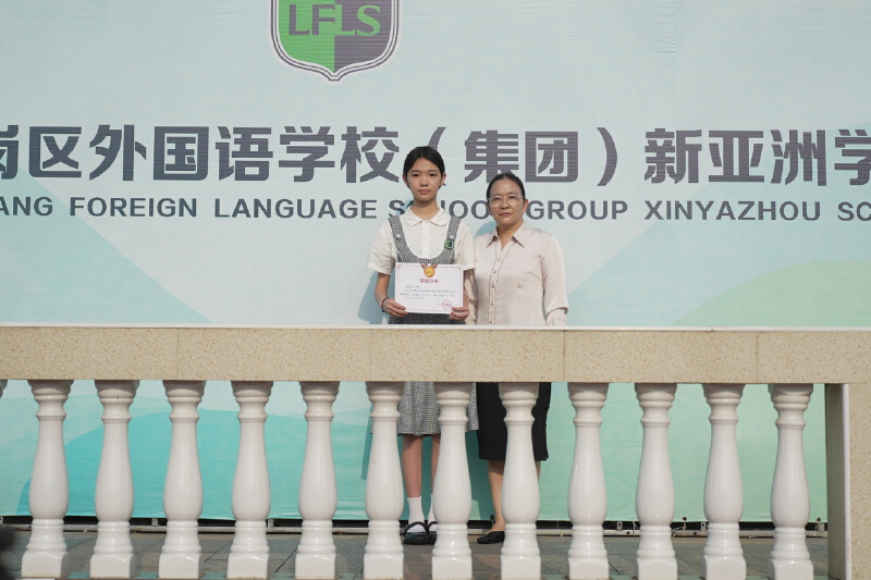 ▲新亚洲学校校长程黎犁为饶芯瑜颁发荣誉证书