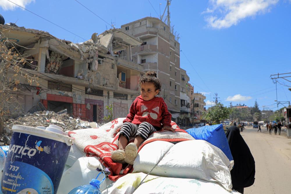 5月6日,在加沙地带南部城市拉法,巴勒斯坦人离开家园。新华社发(里泽克·阿卜杜勒贾瓦德摄)