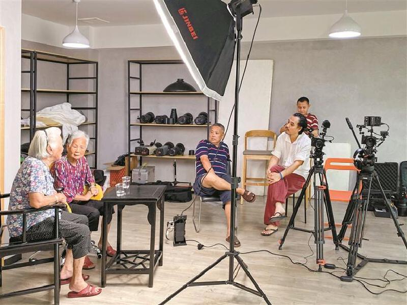 ▲纪录片《樟坑径76号》摄制组采访村民。 王兆宇 摄