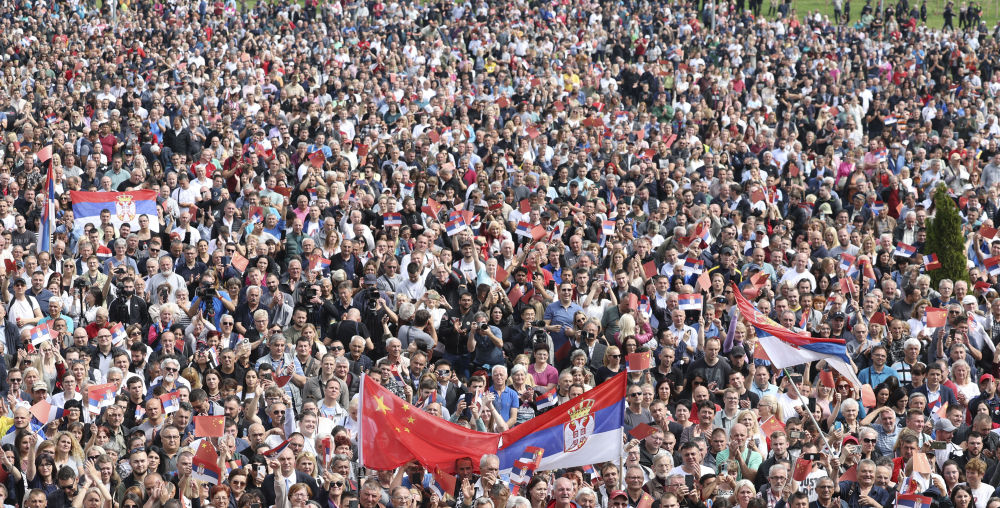 当地时间5月8日,国家主席习近平在贝尔格莱德出席塞尔维亚总统武契奇举行的欢迎仪式。