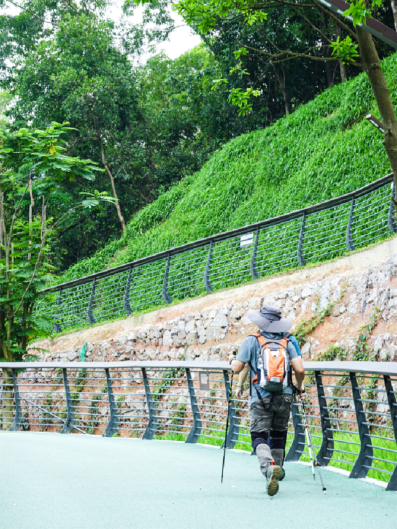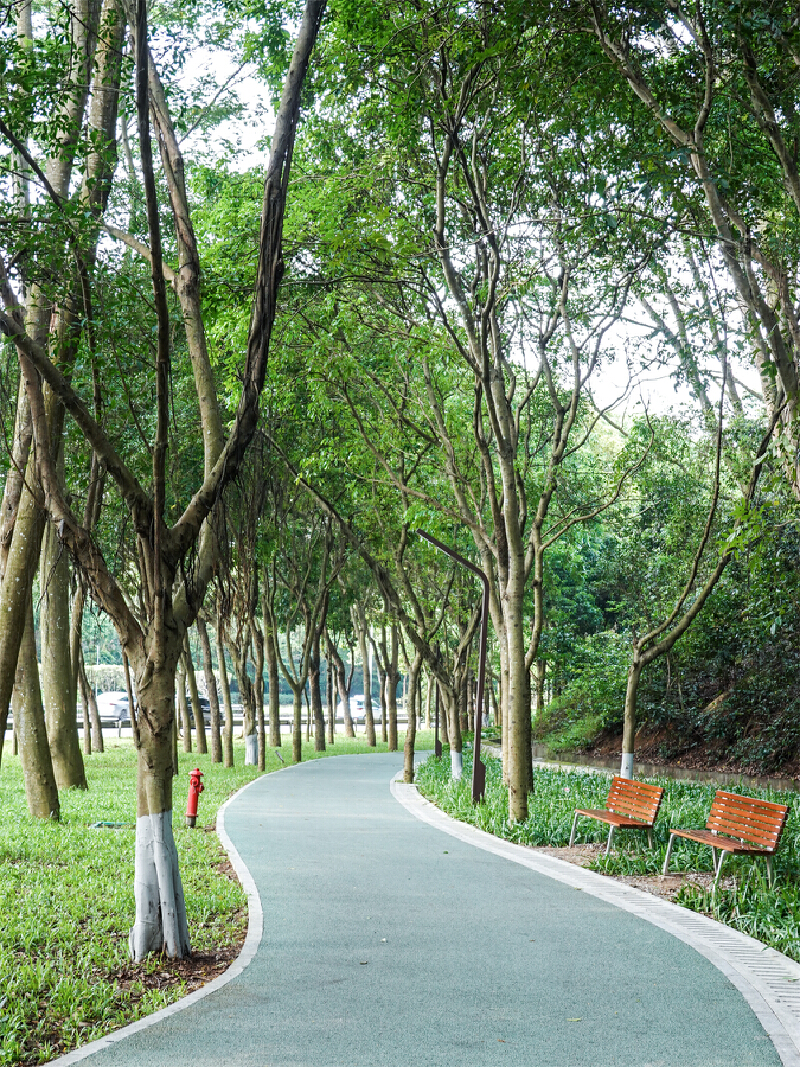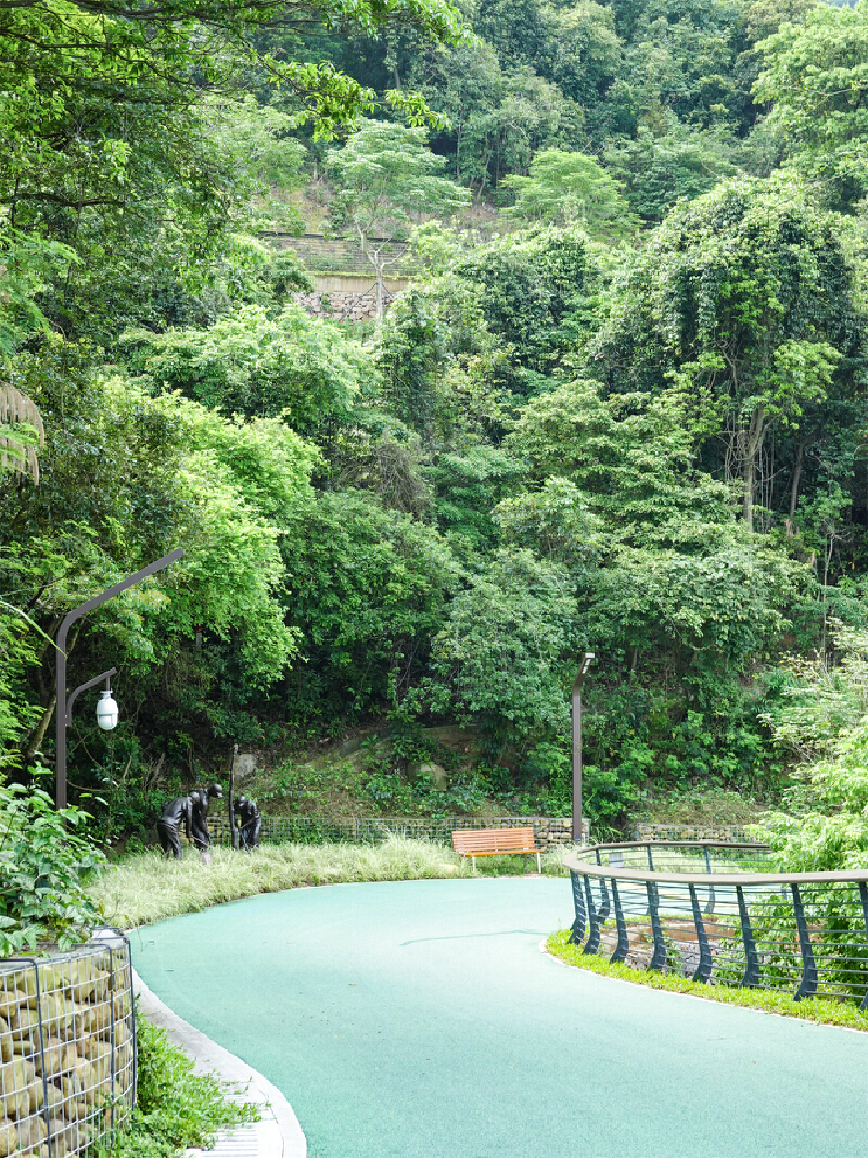 绿道主线路面平坦,起伏也不算大,对膝盖很是友好,可散步,可慢跑,让人能够从容地用脚步轻抚大地的脉络。