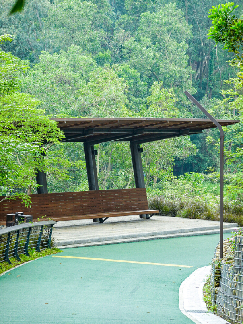 均匀布设在途中的亭廊座椅,温馨提示着:慢行别急,该休息啦。