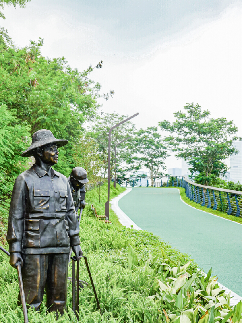 在这个路段,沿途的平台上树立着不同职业的雕塑,象征着各行各业无私奉献的人们——每一个岗位上的付出,都值得被铭记。