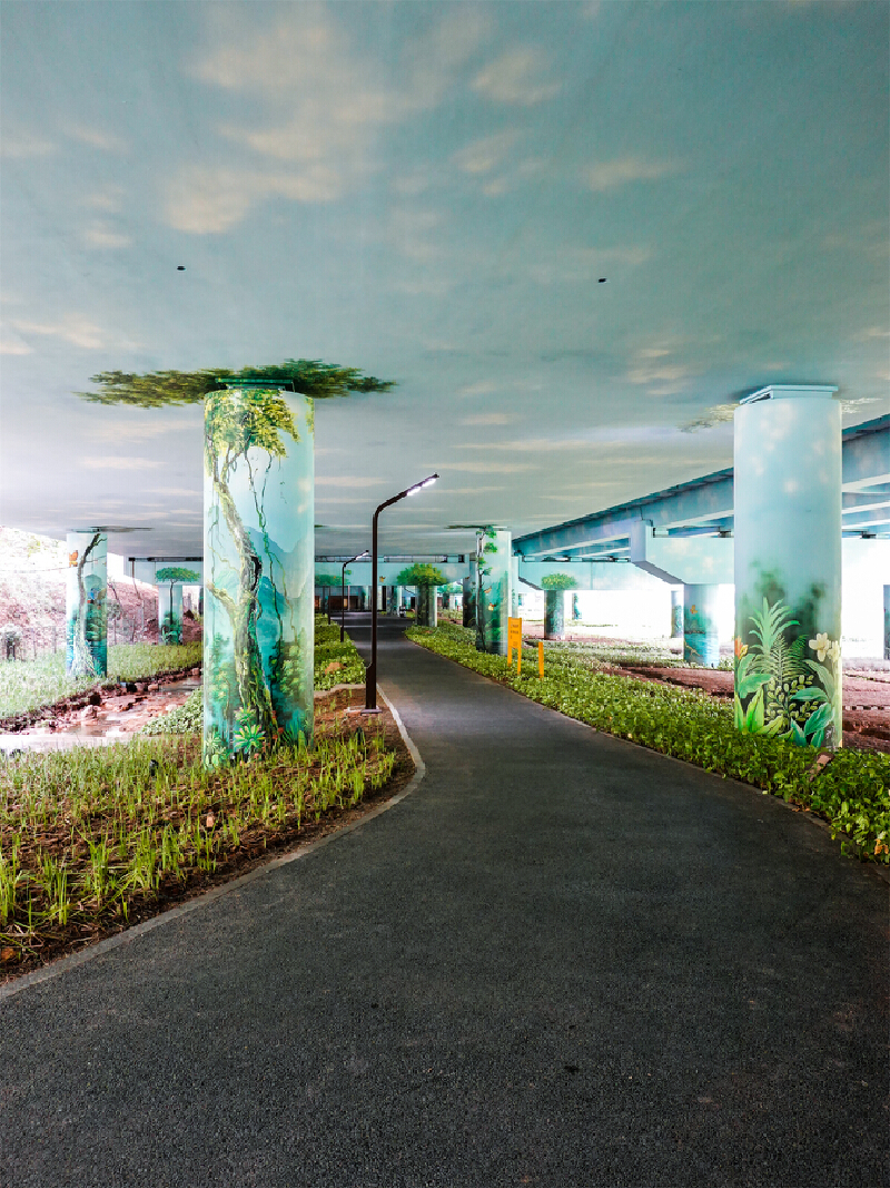 这里是绿道的终点,彩绘的桥体既能遮阳避雨,又以饱满的色彩艺术,为这段旅途画上美好的句点。