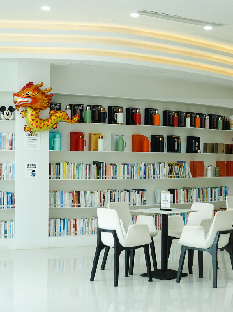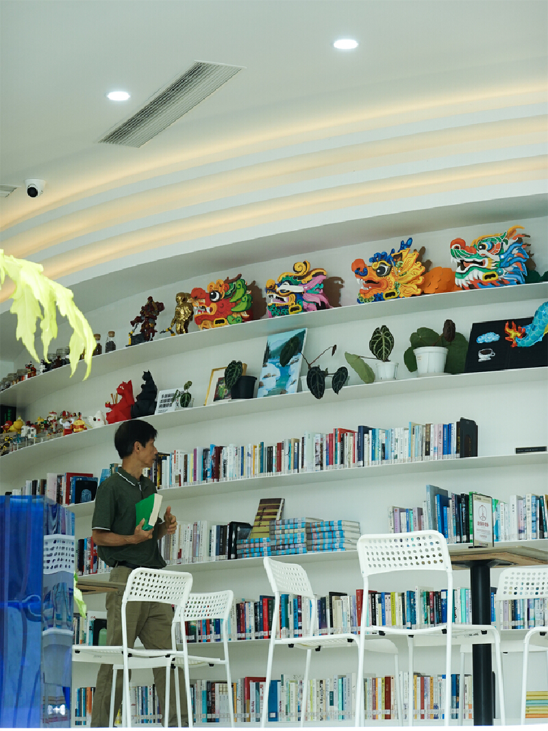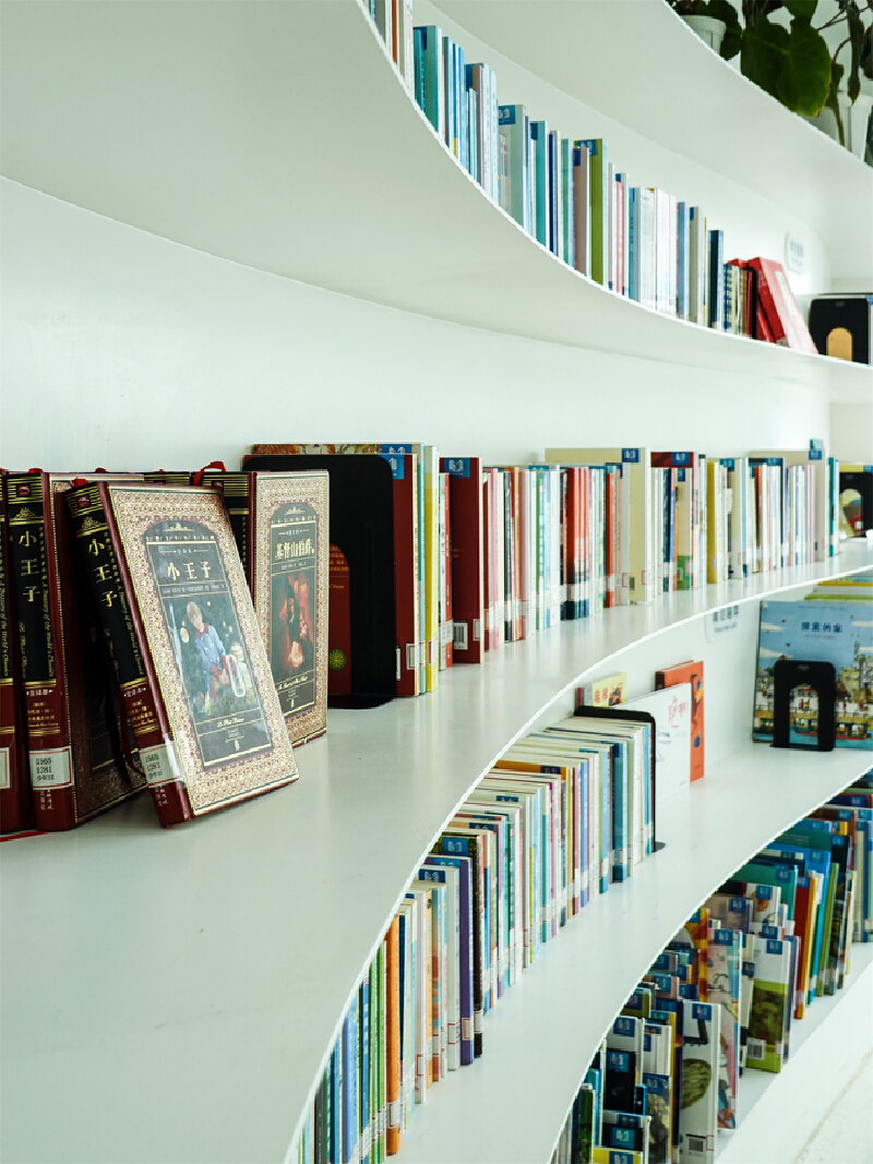 山尖浮着一朵“云”!云顶书吧的建筑造型有着浓郁的艺术气息,白色的主色调带来适合夏季的洁净感。内有餐吧可点餐,还有大量书籍绘本可供免费阅读。