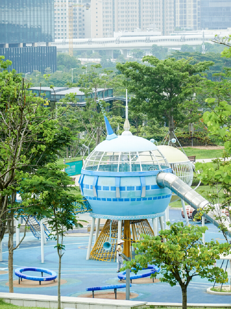 如果仍有余裕,不妨顺便打卡深圳北站中心公园。遛娃、露营、观景、看书……面积超大,功能超全,还全都免费!