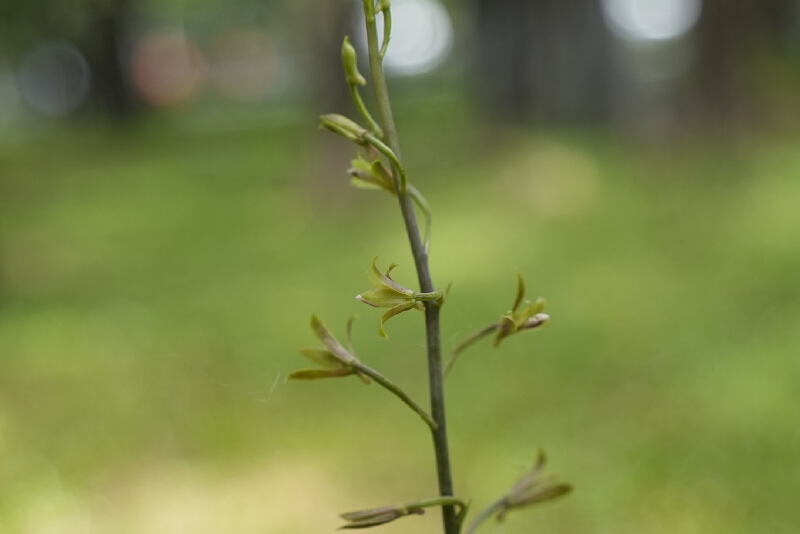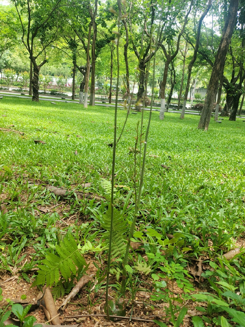 5月8日,有市民在深圳南山区荔香公园游玩时,发现了一株刚长成的特殊无叶兰科植物并通知了公园管理处。经深圳市兰科植物保护研究中心高级工程师孔德敏与兰科植物种质资源库栽培管理主要负责人温艺明现场鉴定,确认为无叶美冠兰。