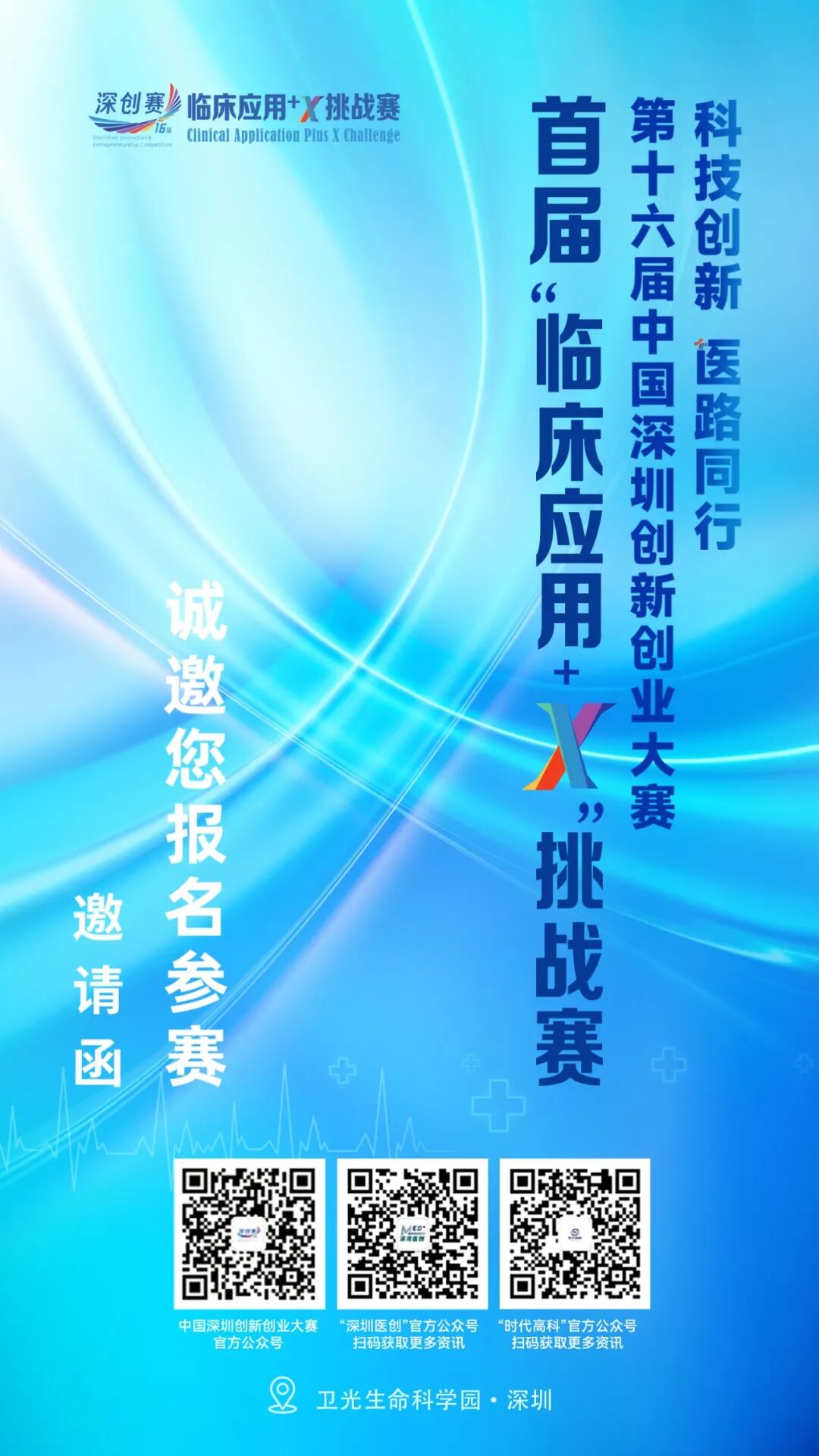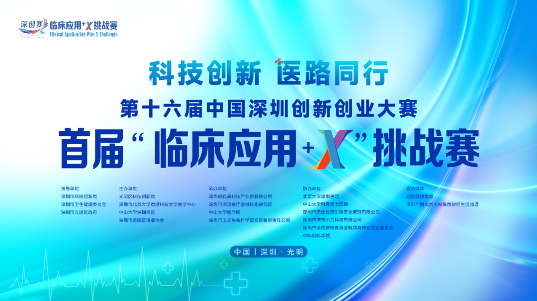 为贯彻“面向人民生命健康”国家战略导向,促进医学科技成果转化与创新创业。在深圳市科技创新局、深圳市卫生健康委员会、深圳市光明区政府的指导下,首次举办“临床应用+X”挑战赛。