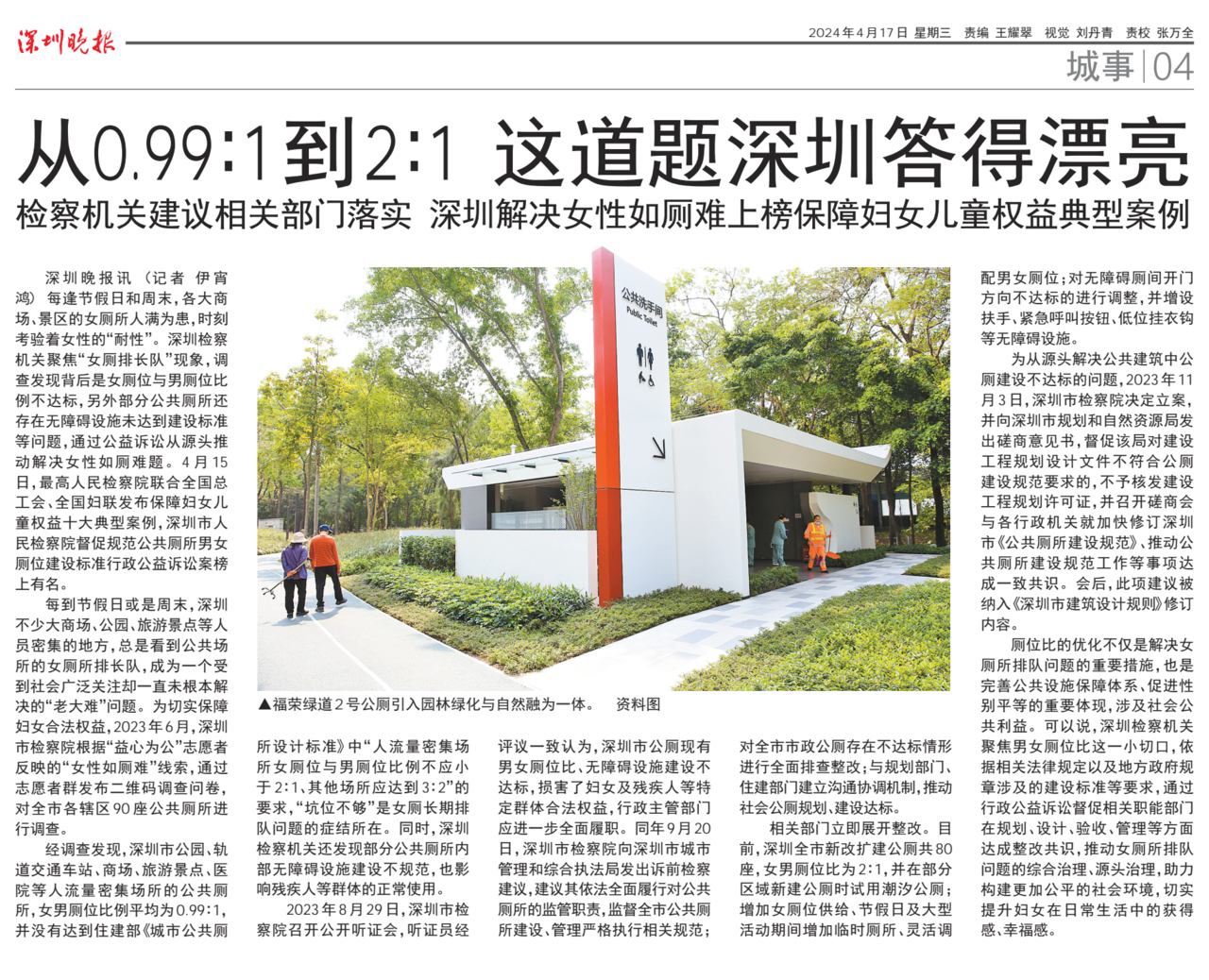 女厕排队怎么解决?“深圳经验”入选国家级典型案例。截至目前,深圳新改扩建公厕共80座,女男厕位比为2:1,并在部分区域新建公厕时试用潮汐公厕。