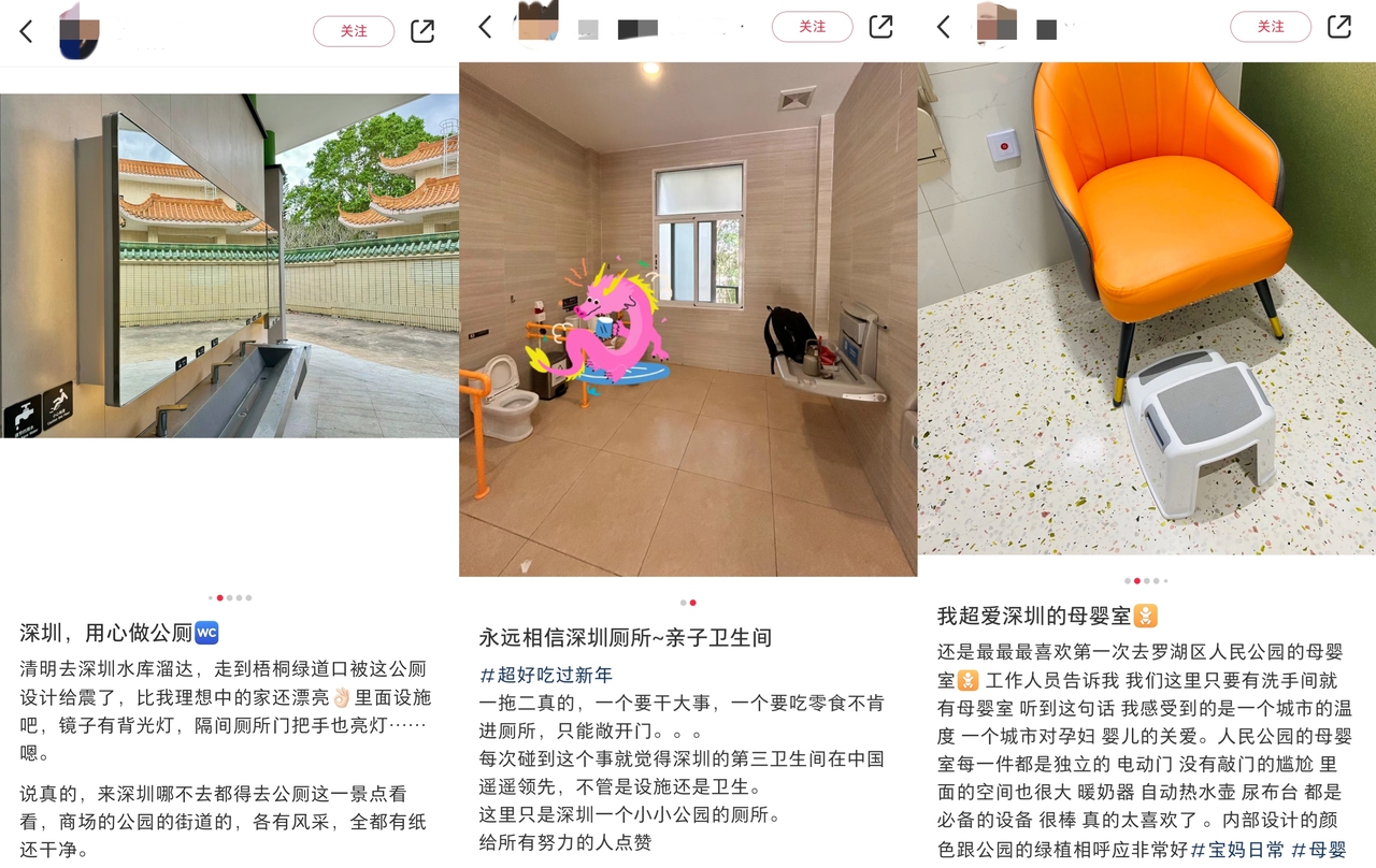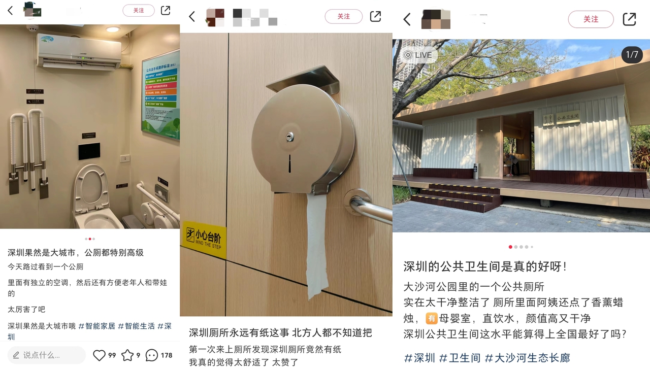 公厕也能够“俘获”众多粉丝、成为“网红打卡地”,看似意想不到,细琢磨又在情理之中。深圳公厕在社交平台上频频“出圈”,引来市民和外地游客的话题记录与分享。“设计真的超级绝”“上厕所不用带纸的安全感”“公厕外挂的是镜子还是电子屏幕”……乃至今年春节期间,在“春节返乡的深圳人最想念深圳什么”话题中,“公厕永远有纸”的答案成为大家的共鸣。