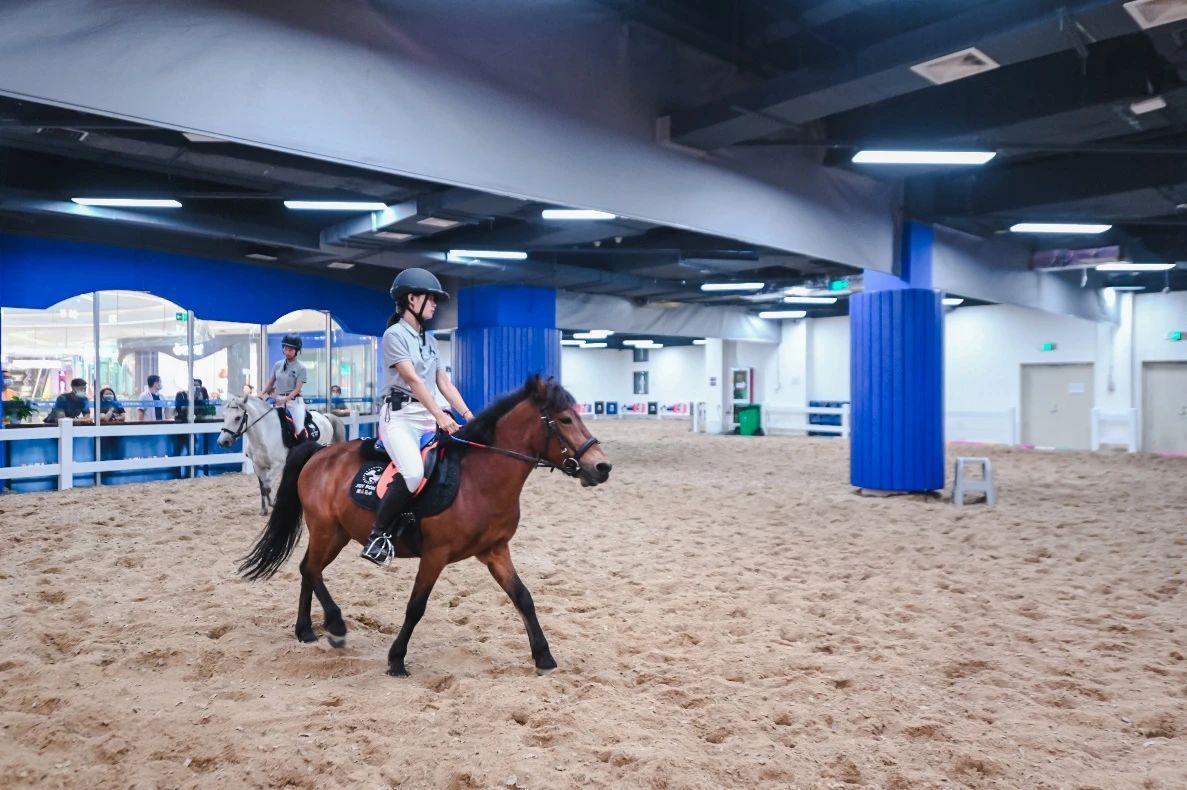 继续游览,你还可在这商场的顶层邂逅一片跑马沙地,一侧的马厩里,许多温顺的骏马正在其中跃跃欲试,期待和你来一场优雅的马术互动;你可以走进另一侧的动物园中,里面有可爱的羊驼、松鼠、考拉可以近距离互动。
