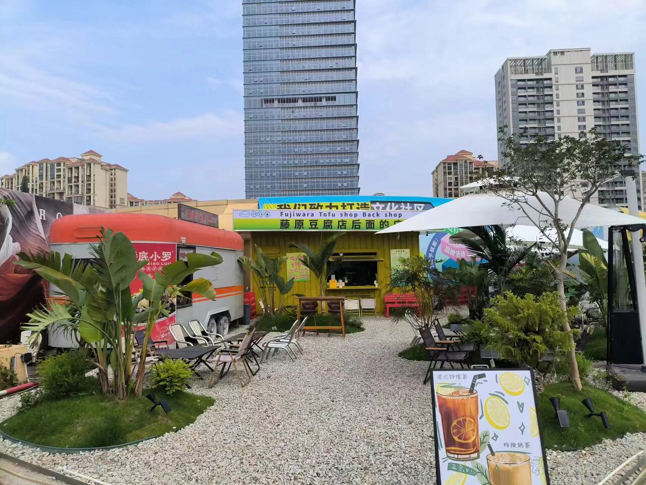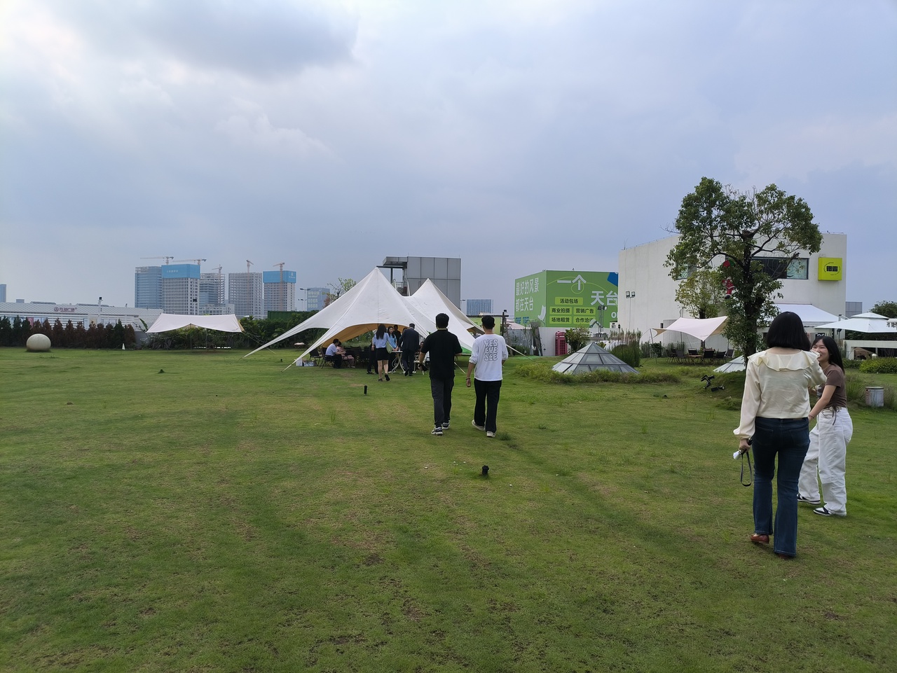 尽管周边环绕着街道办事处的办公大楼、写字楼、宾馆、工厂……但置身于这一方天台,却让人感到仿佛穿越到了野外的谷地中,清风徐来,绿意盎然,随处架设着天幕、帐篷,进入其中坐下,品尝着鲜甜的果饮,古诗中所讲的“心远地自偏”,便在这一刻成为现实的写照。