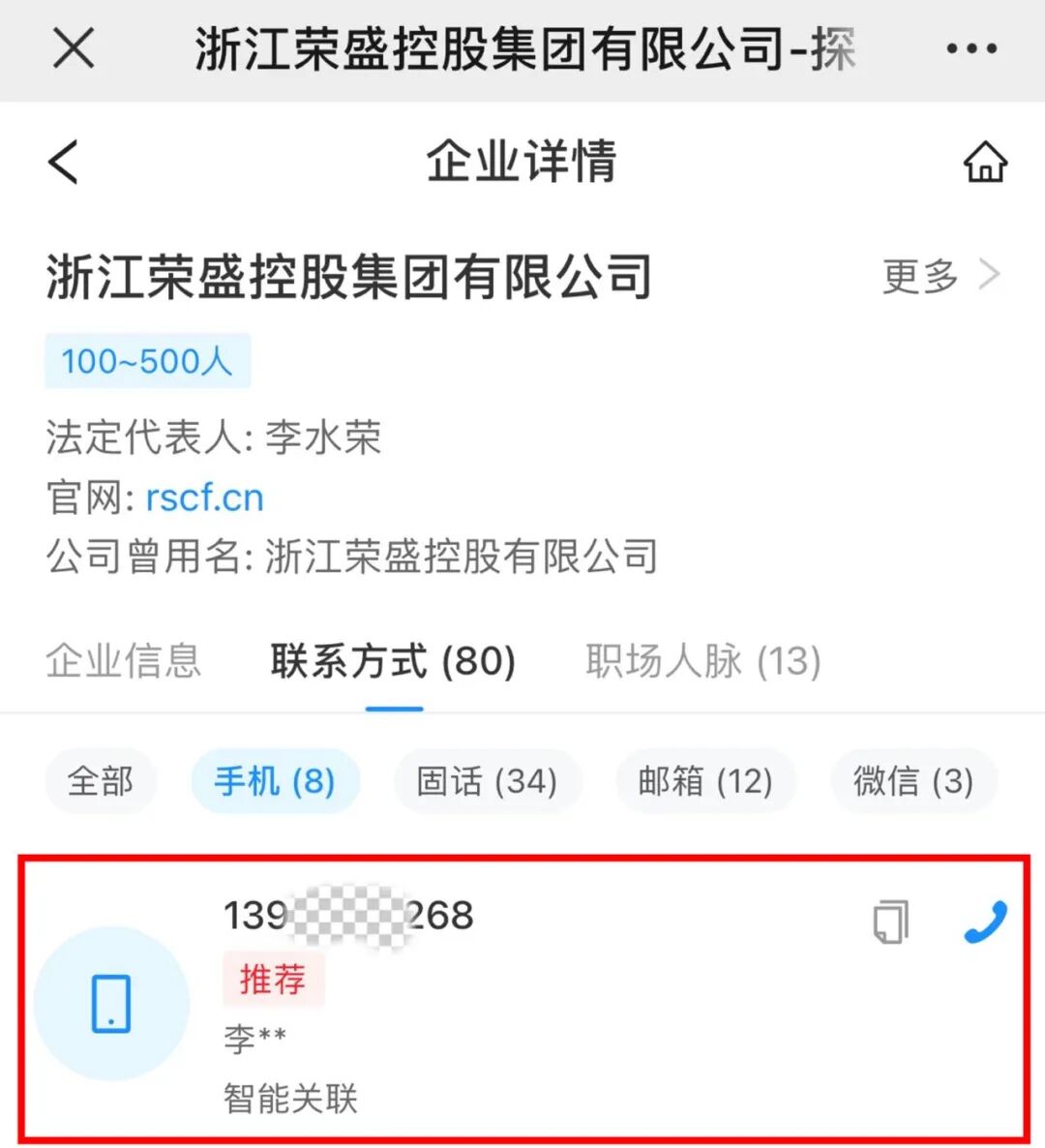 具体到上述企业,吕泽华、赵奇号码来源为“智能分析”,李明顺、冯国华的号码来源为门户网站。