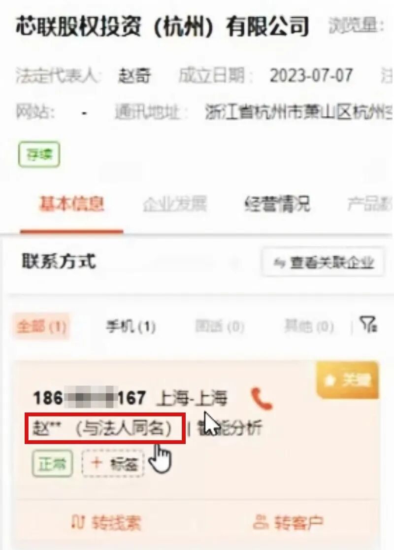 “这叫规避法律风险,我们不能展示全名,展示全名侵犯个人隐私。”该人员解释,“但我们打了标签‘与法人同名’。”