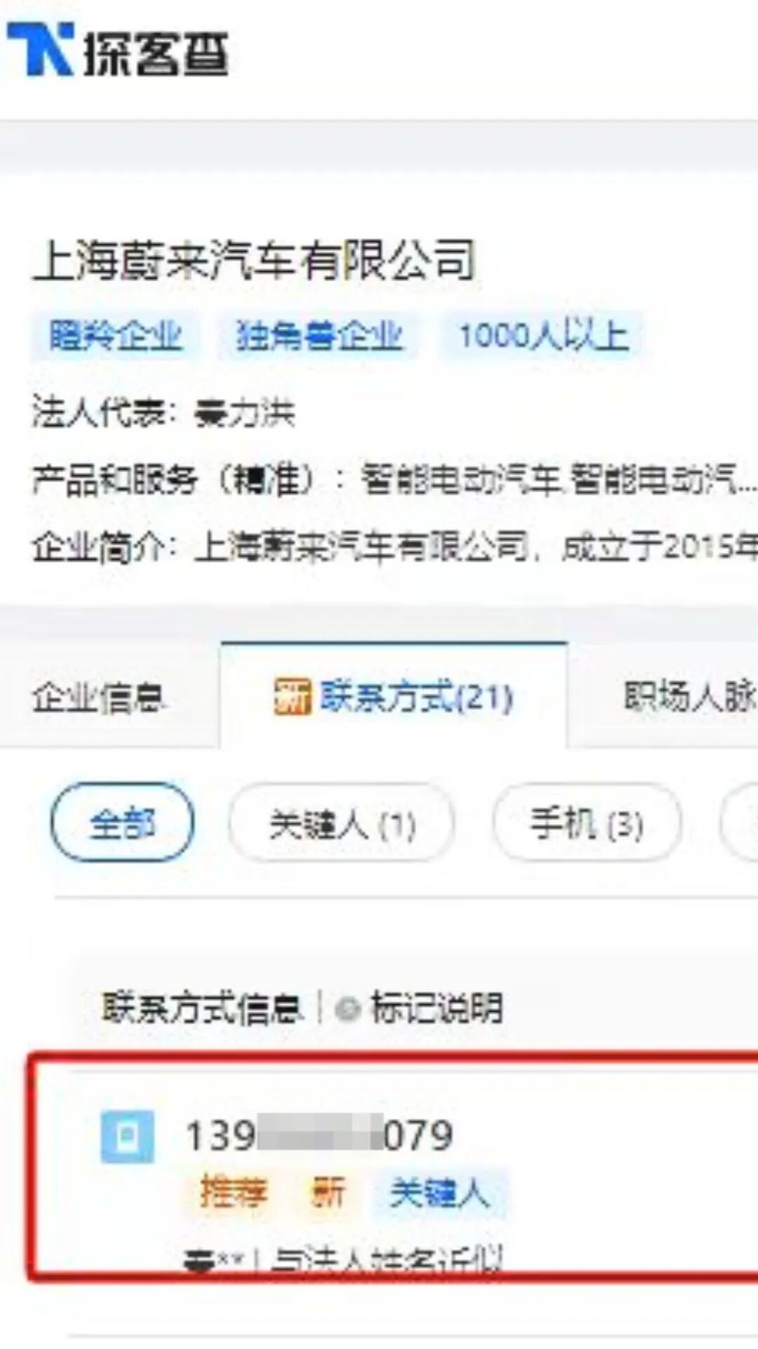 记者从“中国上市公司品牌价值榜”中随机挑选了部分知名上市公司,又补充了一些未上市的知名企业,在探客查上简单搜索,就发现了十位知名企业家的手机号在售,分别是:农夫山泉创始人钟睒睒、牧原股份实控人钱瑛、森马服饰创始人邱光和、荣盛集团董事长李水荣、蓝思科技董事长周群飞、新尚集团董事长唐立新、蜜雪冰城实控人张红甫、钟薛高创始人林盛、喜茶创始人聂云宸、蔚来汽车联合创始人秦力洪(为保护个人隐私,本文将展示的手机号打码)。