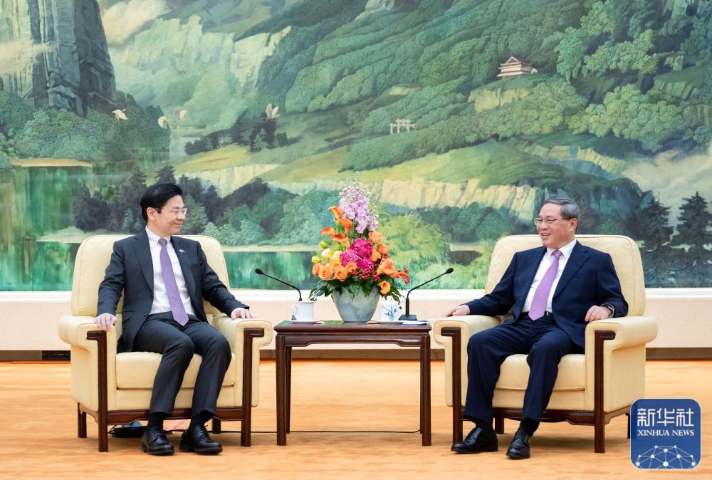 2023年12月6日上午,国务院总理李强在北京人民大会堂会见来华访问的新加坡副总理兼财政部长黄循财。新华社记者 翟健岚 摄