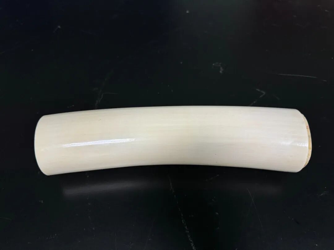 日前,广州海关所属广州邮局海关关员在对一批进境邮件进行监管时,发现1件申报为“塑料人像”的进境邮件机检图像异常。经进一步查验,现场关员发现邮件内为1根圆柱形物品,有成年人小臂粗细,长约20厘米,通体呈乳白色,质地坚硬、色泽温润,表面带有象牙特有的“利兹纹”。