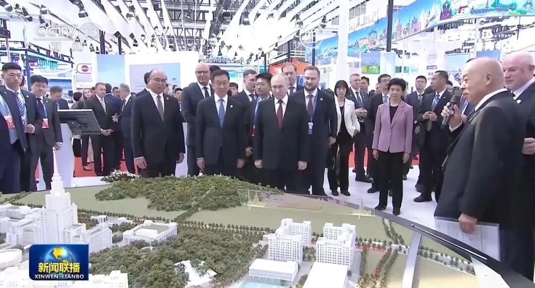 5月17日,俄罗斯总统普京和国家副主席韩正在哈尔滨共同出席第八届中俄博览会开幕式。开幕式后,两人一同巡视博览会展馆并来到深圳北理莫斯科大学展台,参观在深北莫展台展出的大学校园沙盘,听取了深圳北理莫斯科大学校长李和章关于办学发展情况汇报。