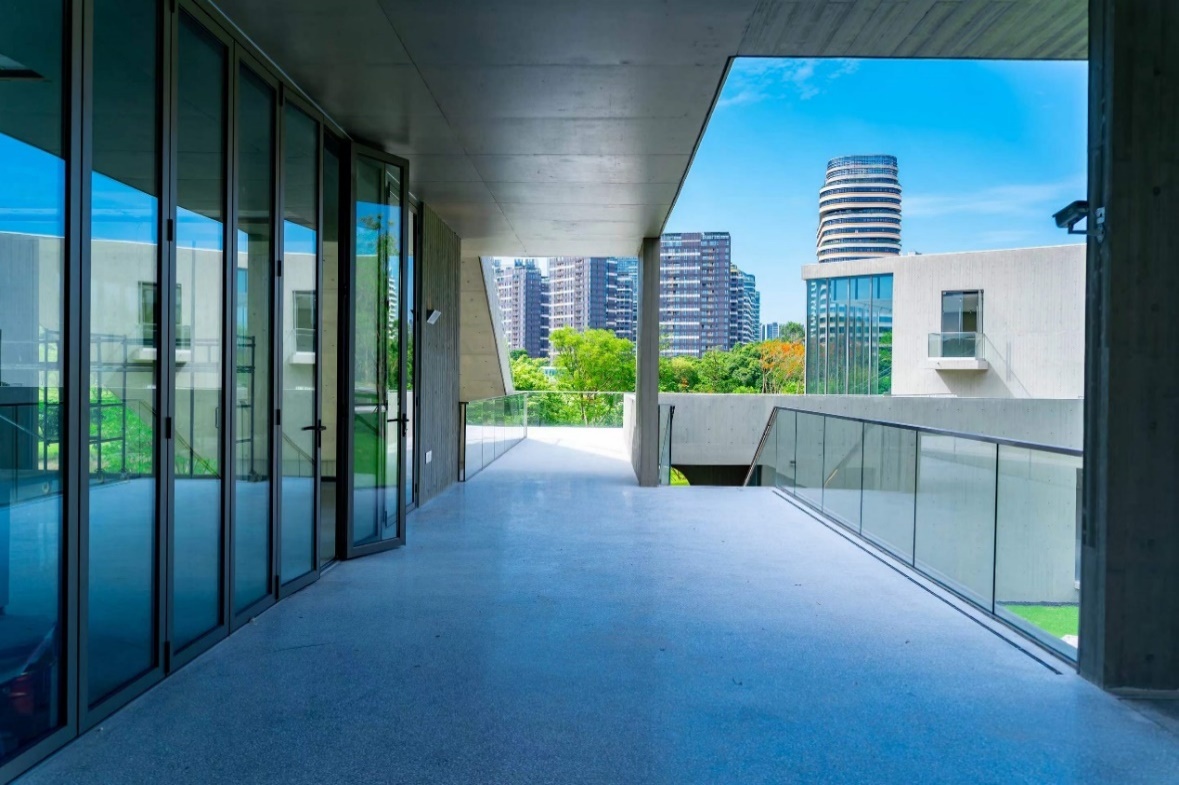 在这里,你可以登露台远眺,前景是碧眼水库波光潋滟的湖面,远方是景深茂密的群山,可以无边框欣赏蜿蜒4公里的虹桥“红飘带”,最大化将虹桥公园怡人景色尽收眼底。在这里,你可以在艺术空间与艺术沟通,感受诗意的涌动。