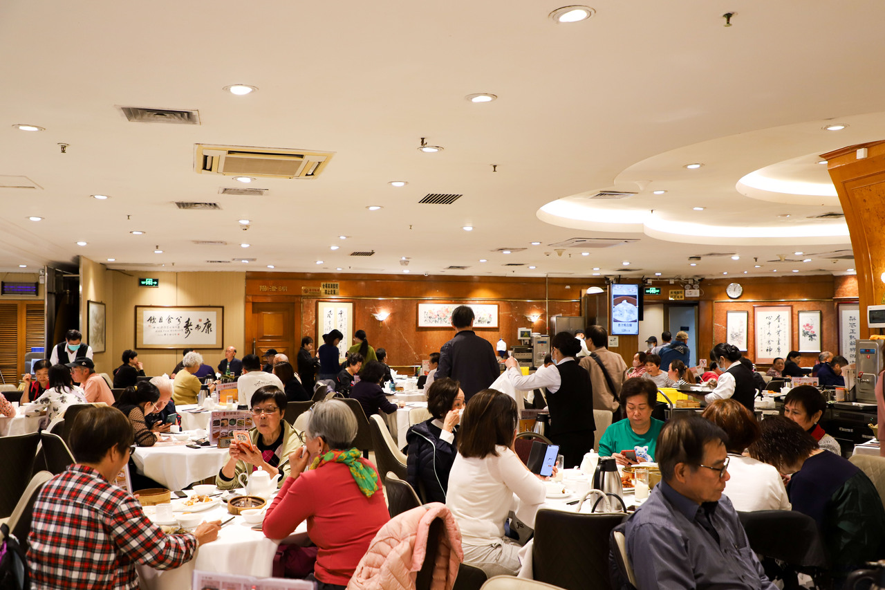 客流如云的小桃源酒家,一阵阵茶香与点心的香味交织洋溢,令人垂涎欲滴。赶上饭点高峰,排号的香港友友可以占据小半层楼——排队也要吃,口味稳咯!