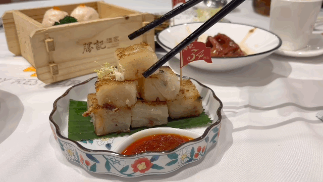 此外,他们的萝卜糕也颇受欢迎,外层酥脆,内里柔软,搭配XO酱食用更添风味。