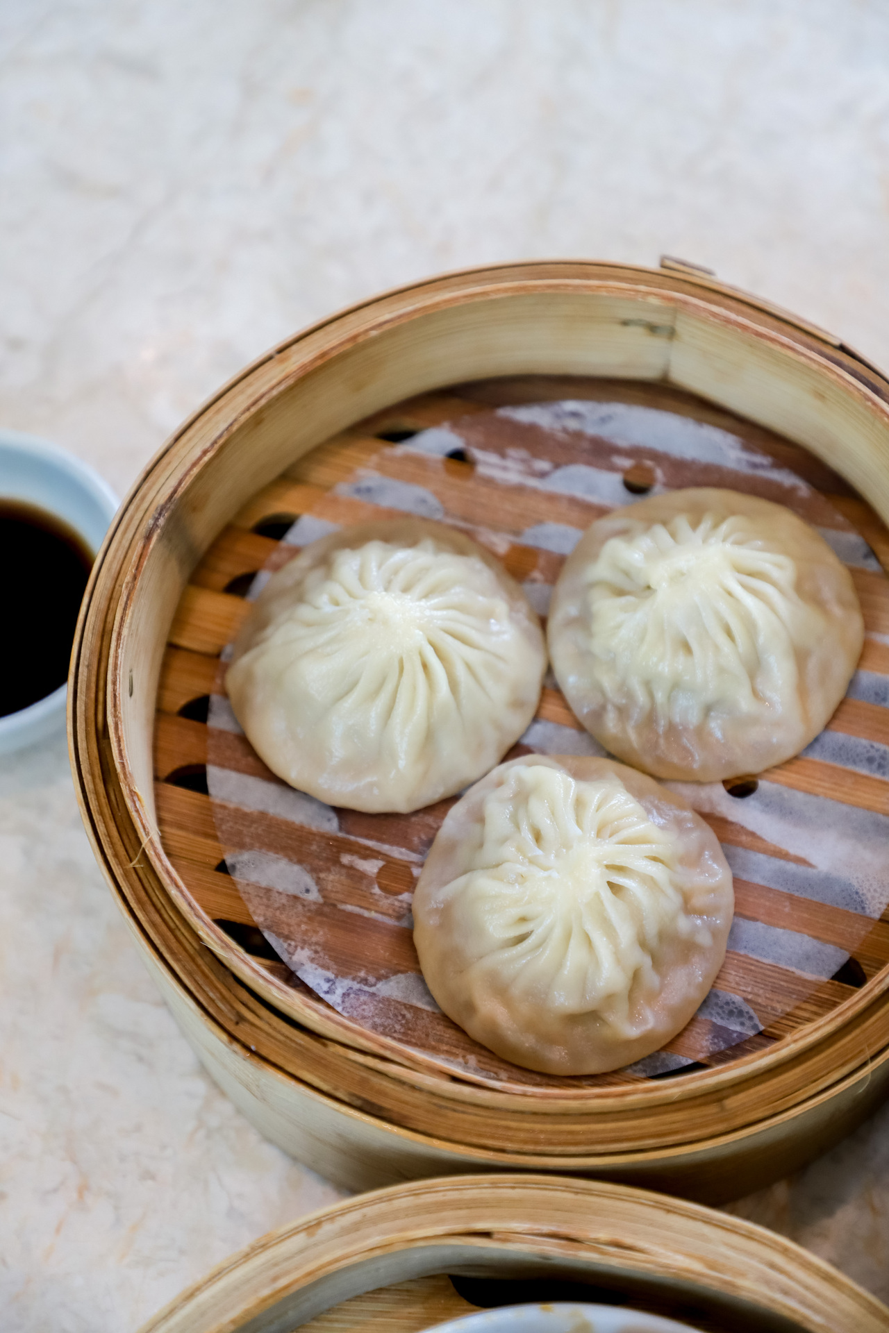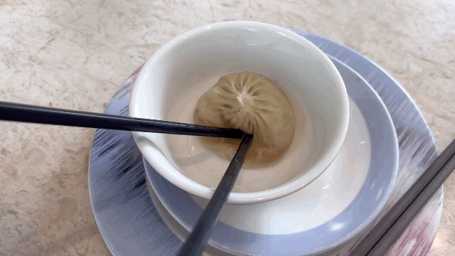 灌汤小笼包皮薄馅嫩,味道鲜美,完全没有腥味。一口咬下,汤汁四溢,吃的时候需留心享用。