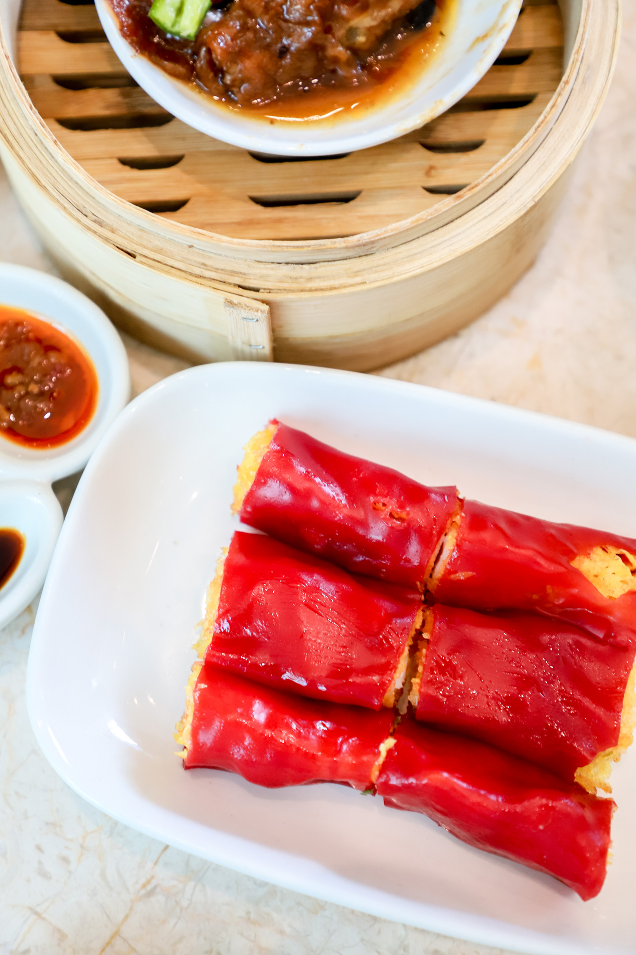 人气选手红米肠粉,每一根红米肠都鼓鼓囊囊,软滑柔韧的粉皮包着酥脆的油条和鲜甜虾肉,微咸带甜的味道加上丰富的口感,这就是红米肠的美味魔法吧!